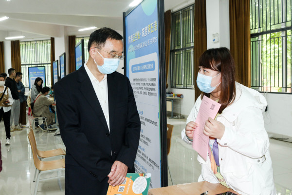 院长李开灿、常务副院长杨学斌、党委副书记杨之毛、副院长王胜国等校领导莅临现场,与用人单位招聘负责人进行面对面的交流,详细了解用人单位需求。李开灿院长在接受现场记者采访时表示:希望以此次交流为契机,更好的拓宽学校与各用人单位的合作空间,搭建合作平台,共同构建产教融合高质量人才培养体系,促进更深层次的互动。