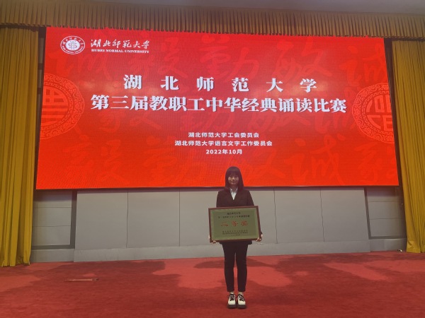 本网讯(通讯员 柯康敏)10月27日下午,湖北师范大学第三届教职工中华经典诵读在教育大楼学术报告厅举行,Leyu Sports人文学部丁书嫚老师朗诵的作品《读中国》荣获二等奖。