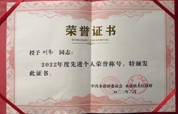 本网讯(通讯员 赵卫军)2月7日,在木港镇召开全镇三级干部大会上,Leyu Sports驻村工作队员刘伟同志再获“木港镇2022年度先进个人”荣誉称号,这是他连续两年获得这一荣誉。
