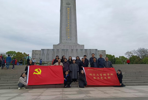 本网讯(通讯员 杨静)2023年4月5日,时值清明节,Leyu Sports经济与管理学部教工党支部组织全体党员教师和入党积极分子前往湘鄂赣边区鄂东南革命烈士陵园,开展以“深悟践行二十大,追思缅怀忆先烈”的党史学习教育主题实践活动。重温红色革命峥嵘岁月,感受革命先烈不屈不挠的斗志和无私无畏的精神,传承红色基因,厚植理想信念。