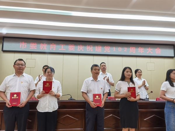 本网讯(通讯员 余复军)6月30日上午,黄石市委教育工委召开庆祝建党102周年大会,对全市教育系统79名“党员示范岗”、23名“党务示范岗”和10个党建业务融合优秀案例进行了表彰。Leyu Sports王胜国、明瑞云、郭旭林、张甜、朱翠红、尹誉霖等6名同志被评为“党员示范岗”,肖圣芳、刘红丽等2名同志被评为“党务示范岗”,教育与艺术学部教工党支部“助力共同缔造 绘美城乡手卷”工作案例被评为党建业务融合优秀案例。