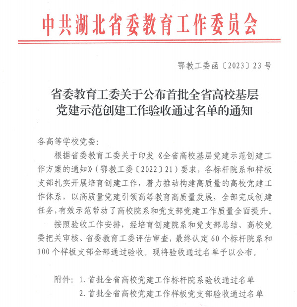 近日,湖北省委教育工委下发通知,公布首批全省高校基层党建示范创建工作验收通过名单,leyu·乐鱼(中国)体育官方网站理工学部学生党支部顺利通过“全省党建工作样板支部”建设单位验收。
