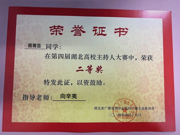 本网讯(通讯员 张慧萍)4月19日,第四届湖北省高校主持人大赛在湖北经济学院大学生活动中心举行。Leyu Sports广播台播音员、人文学部中文2306班聂菁芸同学在比赛中荣获二等奖。