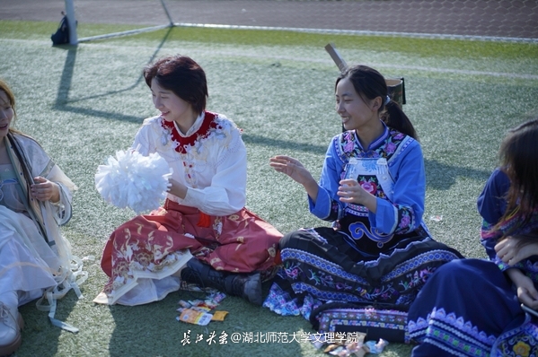 在“击鼓传花”、“摇尾巴”等多个游戏环节中,同学们你追我赶,现场的呐喊助威、欢呼声不断。游戏结束后,身着少数民族服饰的同学们热情地为大家讲解了本民族服装特色。朱媛媛、李玲娜两位同学分别讲述了土家族和壮族的民俗和历史故事,促进了民族之间文化的深入交流,增强大学生对中华民族和伟大祖国的认同感和归属感。