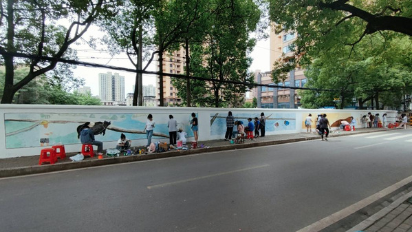 教育与艺术学部党总支充分发挥师生专业所长,服务社会,以墙体彩绘为载体,为城乡文明添彩,先后组织师生300余人次,分别前往黄石市汪仁镇汪仁社区章畈村、黄金山第四小学、花湖社区,共绘制了面积多达720平方米的主题墙绘。和美的乡村、美丽的校园、春耕夏种秋收冬藏的农耕文化,一幅幅画面呼之欲出。随着“网红墙”惊艳的亮相,“美好环境与幸福生活共同缔造”活起来了,城乡文明亮起来了。市民们表示:“画了墙体画之后,感觉我们身边越来越漂亮了,也更有文化气息了!”