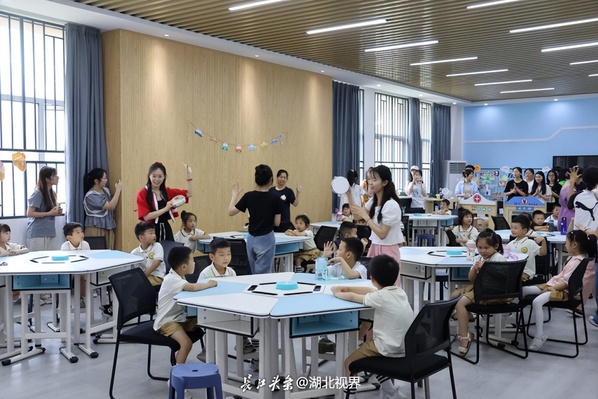 按“一班一活动,一师一幼儿,一室一指导”的原则,贴合实训室的特点,活动在早期阅读实训室、蒙台梭利实训室、保育实训室、手工实训室、智慧幼儿园实训室、奥尔夫实训室和物理演示实验室同时进行。大学生们精心策划了活动,包括科技展览、皮影戏、手工制作、音乐游戏、趣识动物、娱乐互动等。这些活动不仅推动孩子们的能力发展,还增进了师生的互动与交流。孩子们在活动中展现出高昂的热情和积极性,他们与老师一起完成任务,在快乐中接受知识,在观察中学会思考。