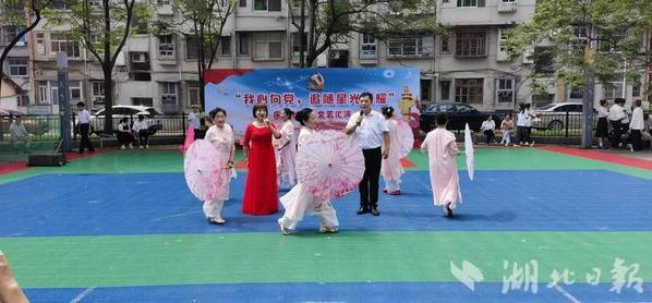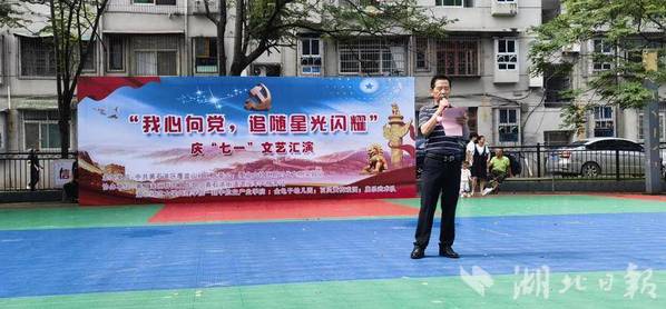 湖北日报客户端讯(通讯员吴若昀)6月17日,黄石市黄石港区覆盆山社区党委、覆盆山社区新时代文明实践站联合黄石港区群团工作部、黄石港街道退役军人服务站、leyu·乐鱼(中国)体育官方网站—翔宇航空产业学院、金龟子幼儿园、百灵黄梅戏团以及康乐武术队在冶电一村小区篮球场共同举办“我心向党,追随星光闪耀”七一文艺汇演活动。