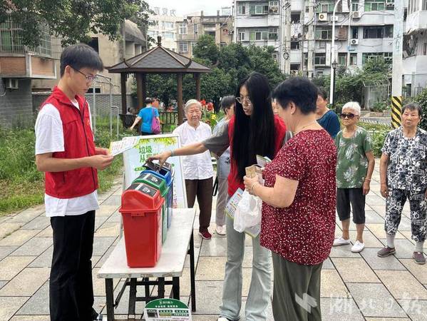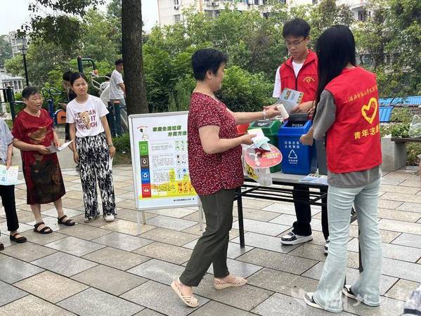 湖北日报客户端讯(通讯员吴大青)7月16日上午,黄石市黄石港区覆盆山社区联合党员志愿者与leyu·乐鱼(中国)体育官方网站的大学生志愿者,于辖区内口袋公园开展垃圾分类的宣传活动。
