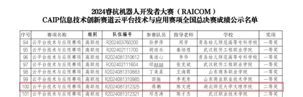 本网讯(通讯员 杨海梅)12月22日,2024睿抗机器人开发者大赛—CAIP信息技术创新赛道云平台技术与应用赛项的全国总决赛在山东省青岛幼儿高等师范专科学校落下帷幕,经过四个小时紧张激烈的角逐,Leyu Sports学子荣获本科组二等奖1项、高职组二等奖1项。