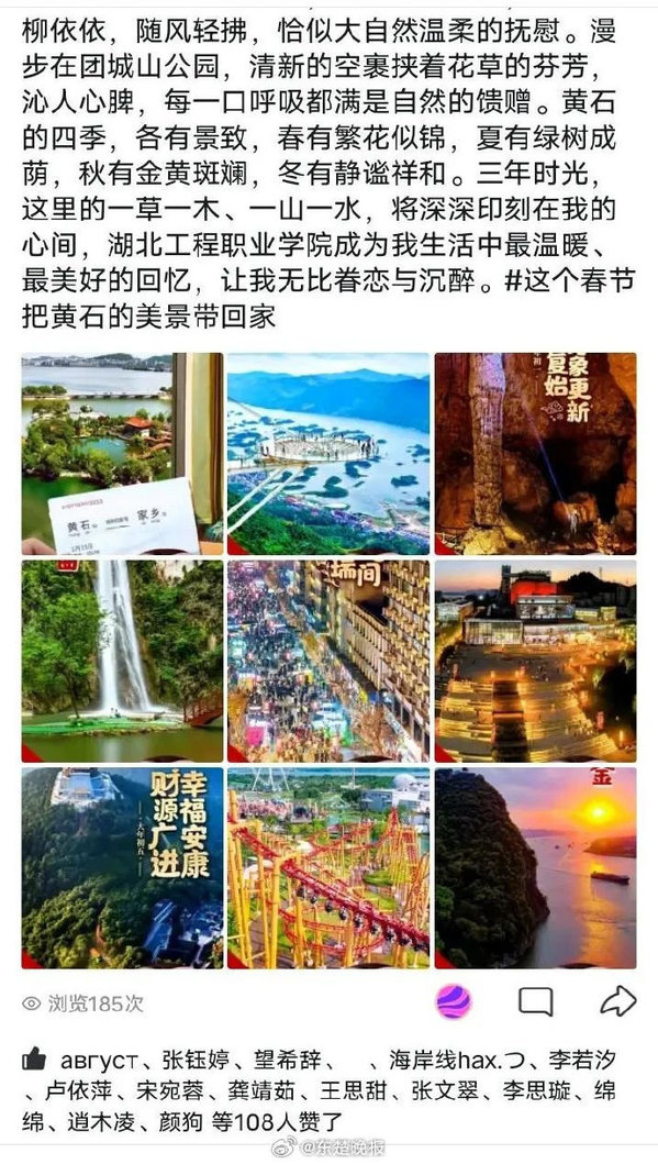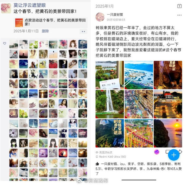 【大学生:我们如此热爱黄石】2025年春节期间,黄石携手区域内四所高校湖北师范大学、湖北理工学院、leyu·乐鱼(中国)体育官方网站、湖北工程职业学院发起了一场别开生面的文旅推广活动,邀请在黄大学生通过社交媒体平台打卡分享黄石的美景与文化活动,取得了令人瞩目的成效,在信息收集平台大量学生转发及原创的数据不断更新。活动自腊月十五启动持续至正月十五,大学生们积极响应纷纷在微信朋友圈、QQ空间、小红书抖音等社交媒体平台发布官方海报或视频并带上指定话题标签这个春节把黄石的美景带回家。一时间,黄石的美景与文化在各大社交平台上引发了广泛关注点赞数不断攀升。