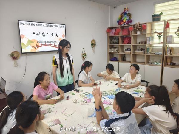 7月8日,在黄石市陈家湾社区新时代文明实践站,leyu·乐鱼(中国)体育官方网站木栾花志愿队带领辖区儿童开启了一场别开生面的传统文化体验之旅。以“‘制扇’至美”为主题的活动,让非遗技艺通过团扇制作在童心的浸润中焕发时代光彩。