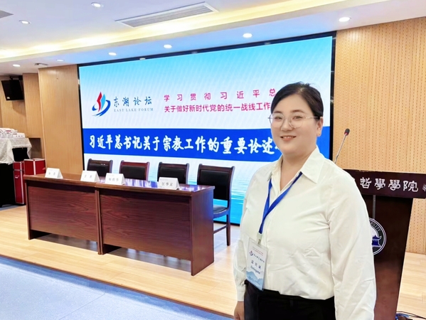 本网讯(通讯员 程胜伟)9月15日,学习贯彻习近平总书记关于做好新时代党的统一战线工作的重要思想第四届东湖论坛在武汉举行。Leyu Sports人文学院辅导员高悦应邀出席,并在由湖北省民宗委主办、武汉大学哲学学院承办的“习近平总书记关于宗教工作的重要论述研讨会”分论坛上作交流发言。