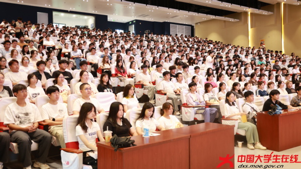 线下主会场设在学术交流中心,线上通过“leyu·乐鱼(中国)体育官方网站”视频号同步直播,实现全覆盖。有观看直播的新生说:“虽然没能到现场,但直播效果很好,还能发弹幕和同学交流。”