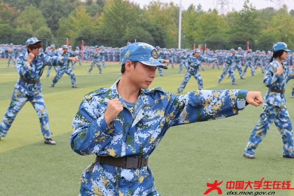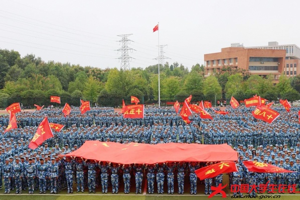 随后的军训成果汇报环节将现场气氛推向高潮。军体拳方阵动作精准,气势如虹。49个受阅方阵身着戎装,迈着铿锵有力的步伐依次通过主席台,口号声响彻云霄。集体合唱《歌唱祖国》深情献礼国庆,展现了新一代学子的昂扬斗志。