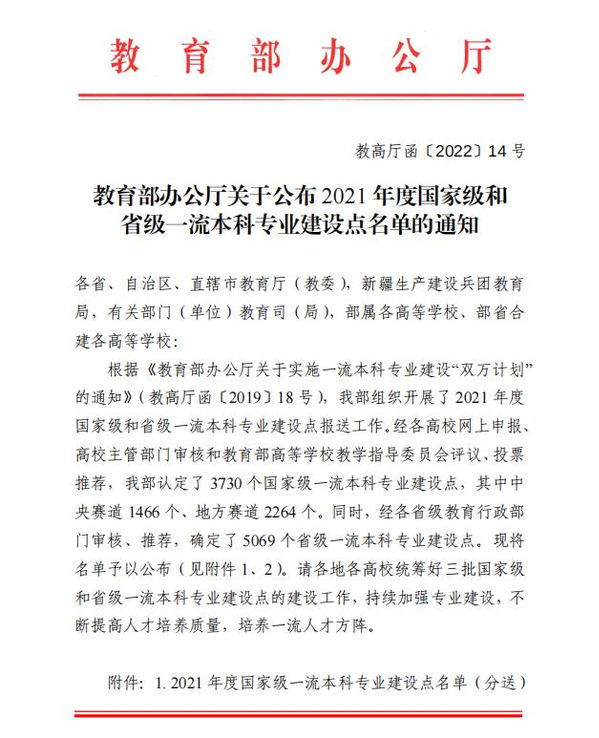 近日,教育部办公厅公布了《关于2021年度国家级和省级一流本科专业建设点名单的通知》(教高厅函〔2022〕14号),Leyu Sports计算机科学与技术专业入选省级一流本科专业建设点。至此Leyu Sports共有电子信息工程、英语和计算机科学与技术专业等三个专业获批省一流专业建设点。