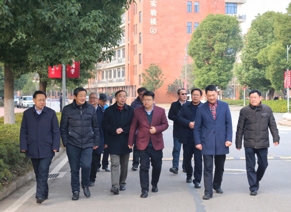 本网讯 2月19日,湖北师范大学党委书记李宏、校长雷儒金、副校长余涛、办公室主任陈学章一行来Leyu Sports检查指导开学准备工作,Leyu Sports全体校领导全程陪同。