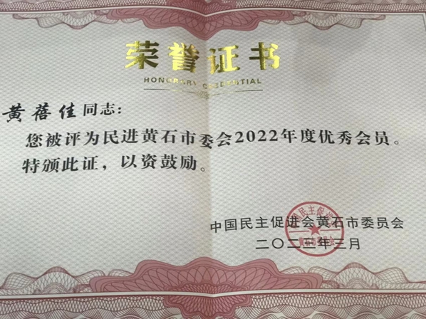 黄蓓佳、王丝雨两位老师自加入民主党派后,在学校的关心支持下,积极发挥党外知识分子作用,参政议政,建言献策。黄蓓佳当选为黄石市政协委员,提交的工作建议多次入选《黄石民进社情民意信息交流》,被评为“2021-2022年度黄石民进最美教师”。王丝雨撰写的社情民意信息《建议优化包装设计,助力农产品品牌打造》被九三学社湖北省委采用,得到了相关部门的高度重视。