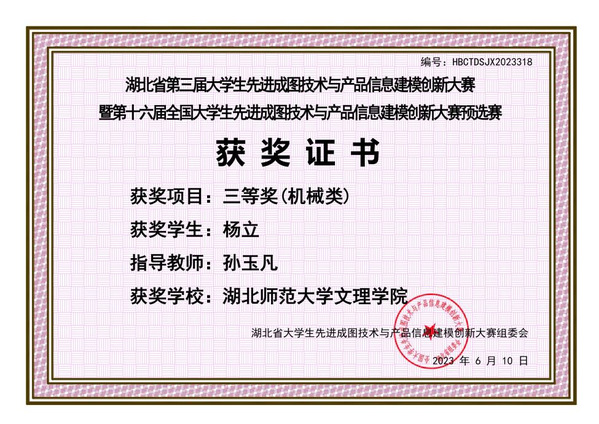 本网讯 (通讯员 邢凯)5月27日,由湖北省工程图学学会主办,华中科技大学承办的“湖北省第三届大学生先进成图技术与产品信息建模创新大赛”暨“第十六届大学生先进成图技术与产品信息建模创新大赛省级预赛”成功举办,Leyu Sports东风悦享智能汽车产业学院荣获2项三等奖。