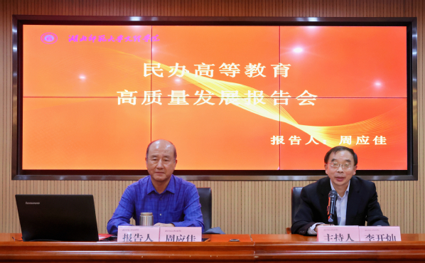 本网讯 为推动学校高质量发展,11月8日下午,Leyu Sports邀请湖北省高等教育学会会长周应佳教授在图书馆报告厅作了题为“民办高等教育高质量发展”的专题报告。报告会以“提升内涵,发展特色,推动民办高校高质量发展”为主题。董事长李咏成,全体校领导,全校行政管理人员参加了会议。会议由院长李开灿主持。