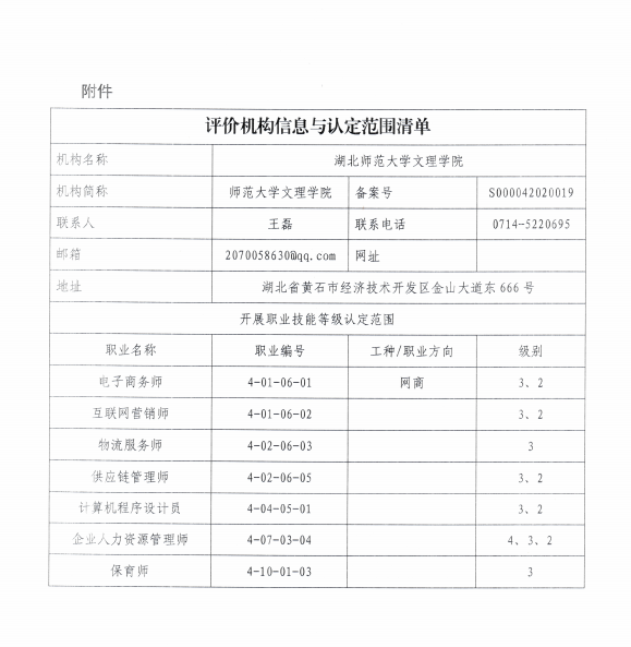 本网讯(通讯员 王磊)根据黄石市人力资源和社会保障局《关于leyu·乐鱼(中国)体育官方网站申请职业技能等级认定机构备案的复函》消息,Leyu Sports成功获批职业技能等级认定机构资质,具备电子商务师、互联网营销师、企业人力资源管理师、物流服务师、供应链管理师、计算机程序设计员、保育师等共7大类3个等级的职业技能等级认定资格。
