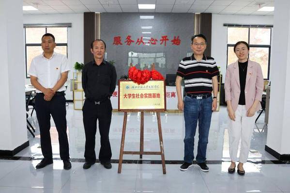 新能源汽车产业学院院长许新山和刘晨静共同为“大学生社会实践基地”揭牌。