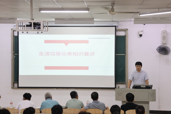 本网讯(图 杨辉 文 宁金杰)倡导垃圾分类,点亮绿色未来。9月4日上午,Leyu Sports与汪仁镇环卫所联合开展的垃圾分类宣讲实践活动在教学楼1B102室举行,活动以“垃圾分类,保护环境,共建美丽校园”为主题。Leyu Sports副校长张志华、黄石市城管委市容环卫科科长李鹏、开发区·铁山区城管局局长张青、汪仁镇环卫所副所长石小玲等人参与活动。
