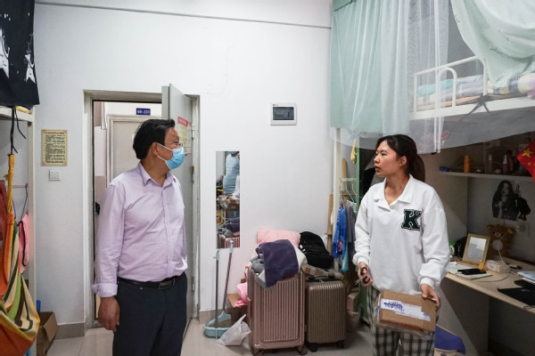 参加检查人员由各部门、学部人员和辅导员等组成,共分6个组。分别由李开灿院长等校领导带队,对学生公寓、实验楼、图书馆、食堂超市、在建工地和校园周边环境等进行全面检查。检查中,检查人员重点查看消防设施、器材维护保养情况,疏散指示标识、应急照明设备是否齐全,疏散通道是否畅通,是否存在违规使用大功率电器等情况,以及食品及原料采购、索证索票情况,采购、贮存、加工、留样全过程管控情况,从业人员健康管理和个人卫生防护情况,食堂环境卫生、防疫消杀管理情况,并亲切看望即将离校的毕业生,提醒学生非必要不外出,同时对学生进行安全知识教育。