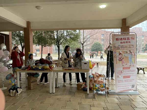 活动开始前,心理部的工作人员们把桌椅、气球等物品摆放好,桌子旁摆放了妇女节的海报,同学们可以用便利贴写下自己的心愿,然后将便利贴贴在海报上。还可以在情绪回收卡上写下自己焦虑的事情,然后将情绪回收卡放进情绪回收箱,丢掉不好的情绪。