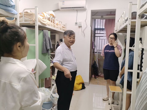 金秋送爽,旭日东升,专升本新生们怀揣着梦想与期待、满腔热血与活力,将以青春的名义谱写,属于他们的人生新篇章!为了解专升本新生报到、入住宿舍、老生返校情况,2023年8月27日下午经济与管理学部主任商树松带领杨静老师、辅导员吕彩云老师、姜希望老师、郑莎莎老师以及学生干部们走访了专升本新生宿舍和学部各专业老生宿舍。