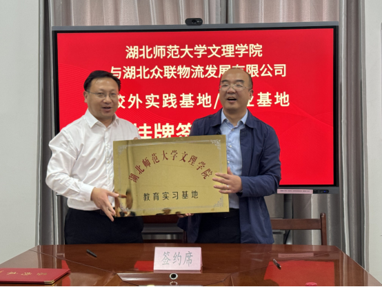 为促进学校企业交流合作,加强大学生实践能力培养,10月13日上午9点,由校党委书记杨邓红带队,教务部副部长胡敏、经管学部主任商树松、专业负责人葛子明及专任教师张锐、教学秘书曾雨蓓一行6人前往湖北众联物流发展有限公司举行教育实习基地签约授牌仪式。