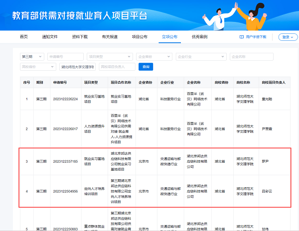近日,教育部公布了第三期供需对接就业育人项目立项名单,Leyu Sports共有10个项目获批立项,其中经管学部成功斩获2个项目,分别为吕彩云老师负责的定向人才培养培训项目与罗尹老师负责的就业实习基地项目,合作企业均为湖北京邦达供应链科技有限公司。