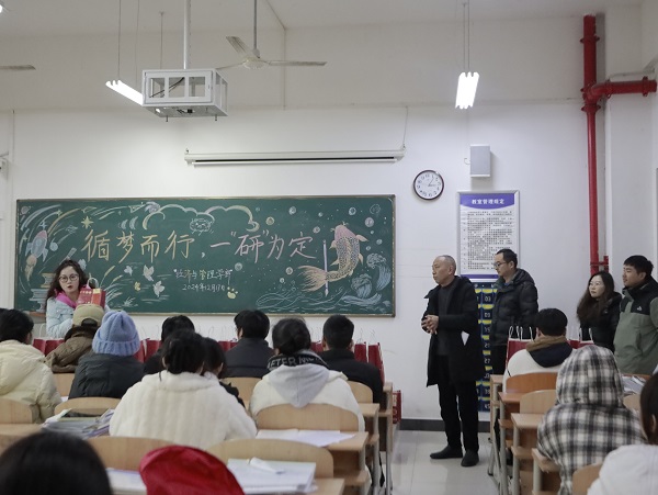 徐燕主任代表学部向考研学子们表达了亲切关怀,并提出了四点希望与要求:其一,坚定信念,持之以恒。考研征程充满挑战,学子们需保持昂扬斗志,锚定目标,以坚韧不拔之毅力奋勇前行;其二,科学备考,张弛有度。冲刺阶段应合理规划时间,优化复习策略,注重劳逸结合,确保身心健康,以良好状态迎接考试;其三,诚信应试,风清气正。秉持学术诚信,遵守考场纪律,展现优良学风与考风;其四,强化保障,贴心服务。学部将继续加强考研指导与支持,全力做好后勤保障服务,为学子们排忧解难,保驾护航。