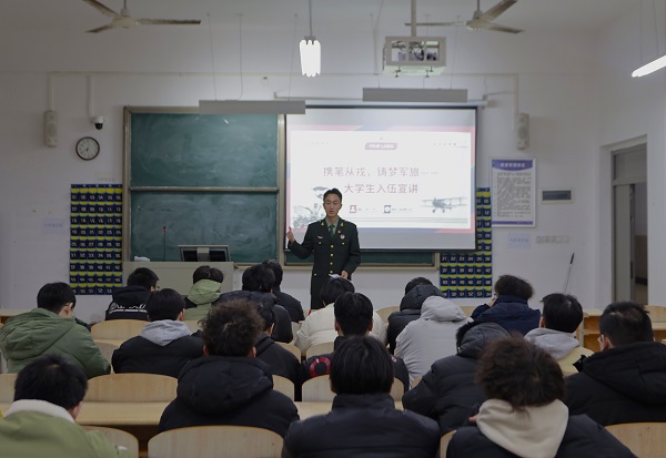 宣讲会上,退役士兵们凭借丰富的经验与深刻的感悟,对入伍要求、征兵流程、报名方式、优待政策以及各类注意事项进行了详细的讲解,让同学们对参军入伍的路径与保障有了清晰的认知。接着,通过分享各自在部队的服役经历,展现了当代大学生投身军旅、献身国防的壮志豪情与精彩历程。从艰苦的军事训练到紧急的任务执行,从个人意志的深度磨砺战友间的深厚情谊,一个个故事让在场的同学们深受触动。最会,在答疑环节,他们针对入伍过程中的相关问题,如体能训练提升策略、兵种选择、在部队考学提干等,给予了耐心且专业的解答,进一步消除了同学们心中的疑虑。