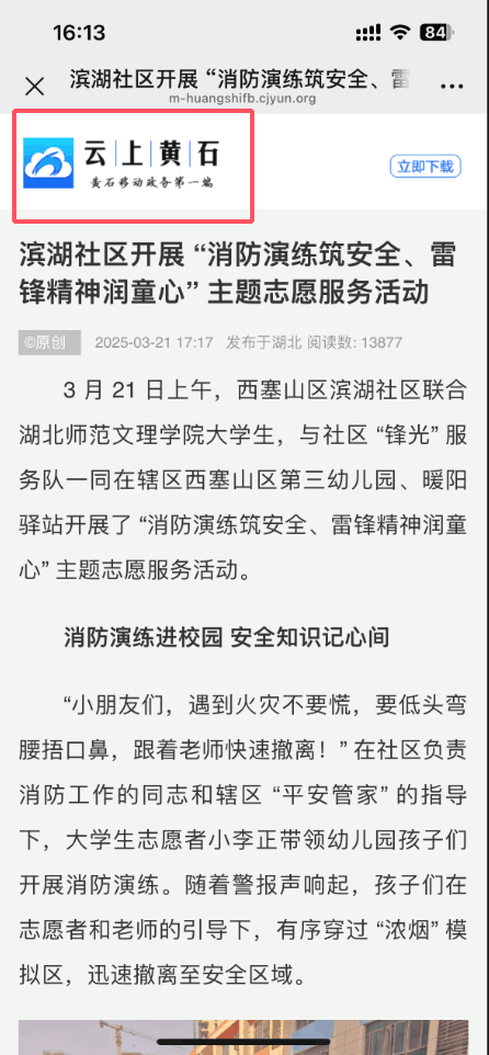 此次活动不仅增强了孩子们的消防安全意识,也让雷锋精神在志愿服务中得到传承与弘扬。同时,活动获云上黄石、湖北日报客户端报道,彰显了社会各界对校社合作的认可与支持。未来,经济与管理学部将继续深化校社共建,整合多方资源,打造更完善的志愿服务体系