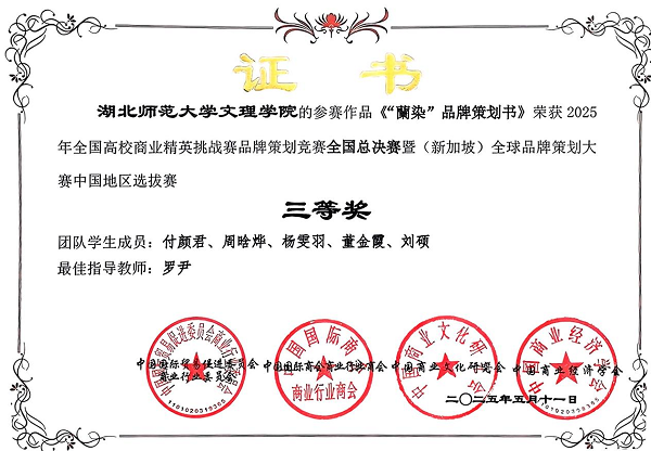 Leyu Sports经济与管理学部罗尹老师指导的妙“布”可言队和妙染小队分别在5月10、11日参加了全国总决赛。最终,妙“布”可言队策划的《“阳新布贴”品牌策划书》荣获全国二等奖;妙染小队策划的《“蘭染”品牌策划书》荣获全国三等奖。