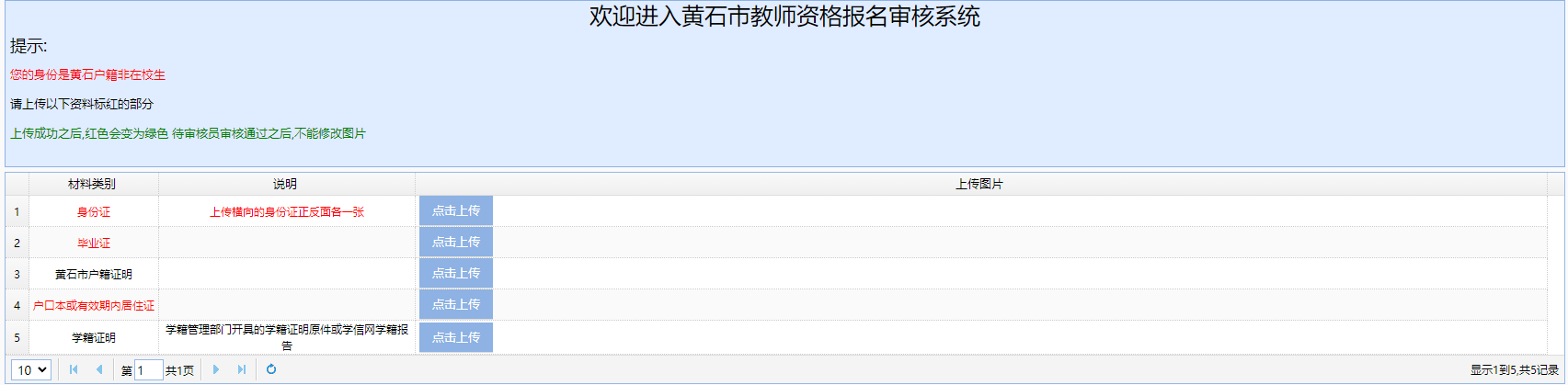 1.户籍在黄石的社会考生,请上传本人身份证、户口簿(本人页)、毕业证信息;