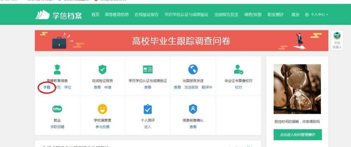 1、输入学信网网址:http://www.chsi.com.cn/,点击学籍学历查询: