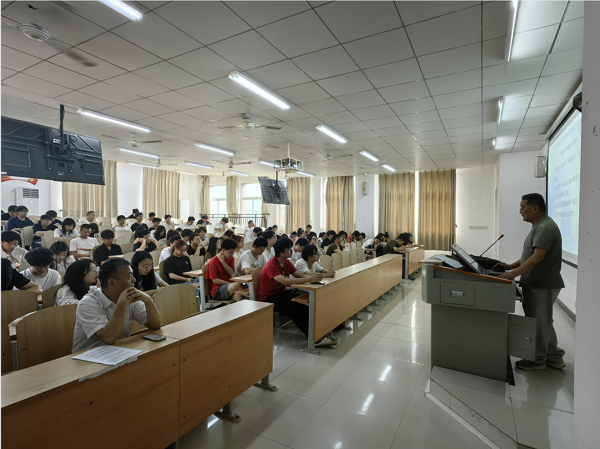 2025年6月13日上午,理工学部在1B311教室举办了2026届非师范专业毕业生毕业实习动员大会。由于专业和人数多,为了保证动员会效果,共分三场进行。参加会议的有教学与科研主任潘继斌、各相关专业教研室主任、相关专业辅导员,2022级相关专业的本科生、2023级专科生参加了动员大会。