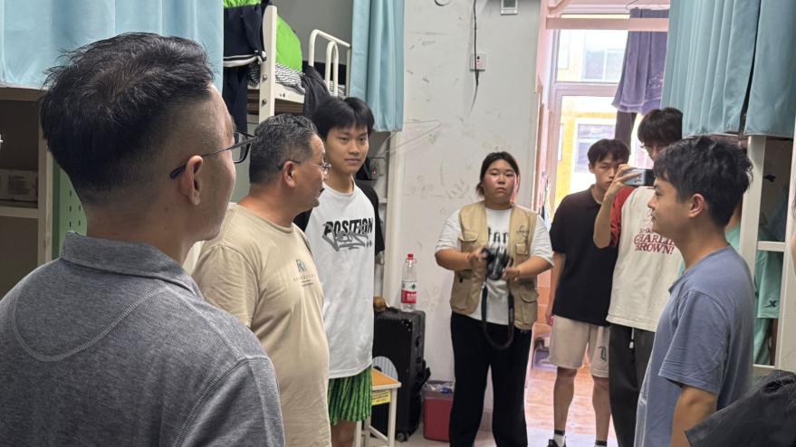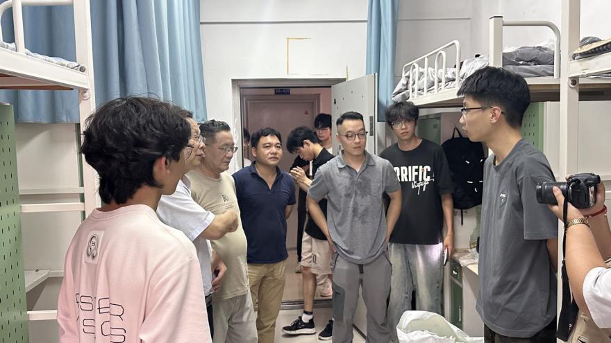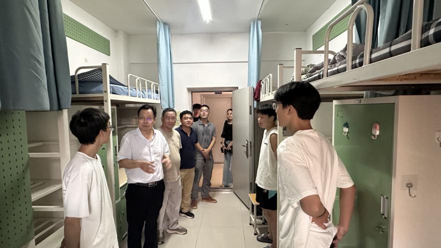 走访过程中,杨之毛书记亲切询问同学们入学后的饮食、环境及住宿适应情况,细致关怀每一位新生的实际需求。他特别强调,安全是大学生活的第一要务,叮嘱同学们增强自我保护意识,尽快做好学业与职业规划,积极融入集体、参与活动,在实践中锻炼自我,以此全面提升学生的个人能力。