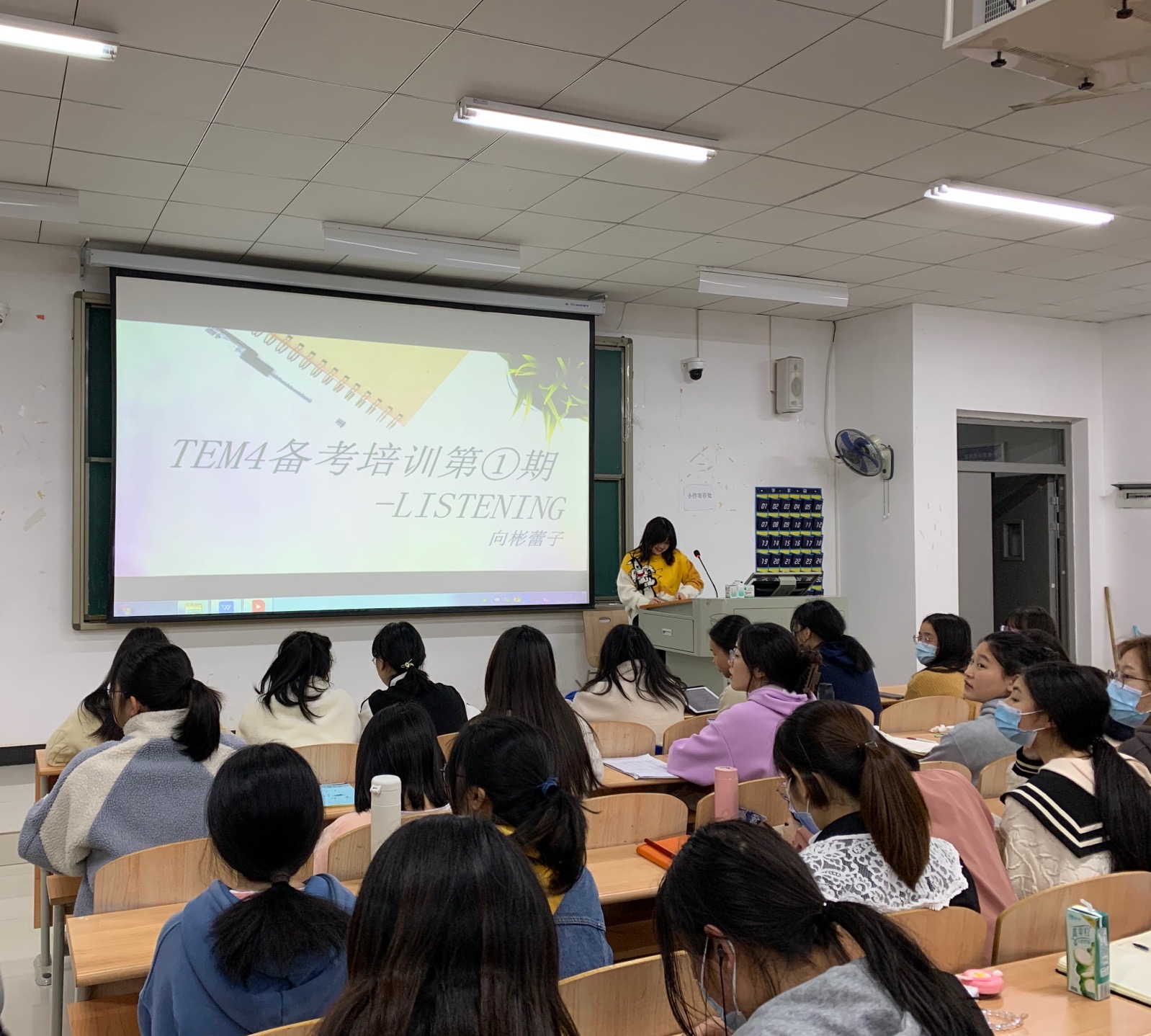 为了帮助Leyu Sports英语、商务英语专业大二学生更好地迎接专四考试,人文学部英语组老师于4月1日晚上六点半开展了专四辅导讲座之听力篇,主讲人向彬蕾子老师,主要从题型分值、听力技巧和学习建议三个层面给学生们进行讲解。讲座生动实用,学生一致好评。衷心祝愿学生们都能取得满意的成绩!