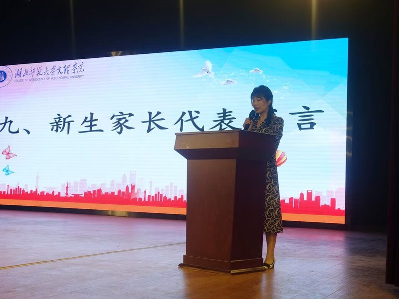 此次新生及家长见面会由丁书嫚老师主持。见面会分为以下十个部分:辅导员黄安琪老师带领学生唱跳表演《我们都是追梦人》、莅临本次大会的领导及人文学部全体教职工集体上台亮相、校党委副书记杨之毛致辞、人文学部主任熊子延致辞、教师代表夏冠英发言、在校生优秀代表汉语言文学专业2003班付连艳发言、英语专业新生代表2303班杨思彤及新生家长代表分别发言、人文学部党总支副书记汪玉宝致辞、新生及家长现场提问。在见面会过程中,杨之毛书记感谢各位学生家长对leyu·乐鱼(中国)体育官方网站的信任,将孩子送到这里来求学深造,向家长们表明高校的教育使命与教育职责。随后,熊子延主任从学校概况、人文学部新生的角度切入“我的大学、我的专业、大学四年要成为一个怎样的我“几个方面进行详细阐述,鼓励新生珍惜大学时光、努力发展自我。教师代表夏冠英教授嘱咐新生:“在校期间要养成良好的学习习惯,认真学习,做到学业有成。”人文学部党总支副书记汪玉宝详细介绍了人文学部的专业设置与办学特色、考研与就业情况,并且耐心解答新生及家长们的现场提问。