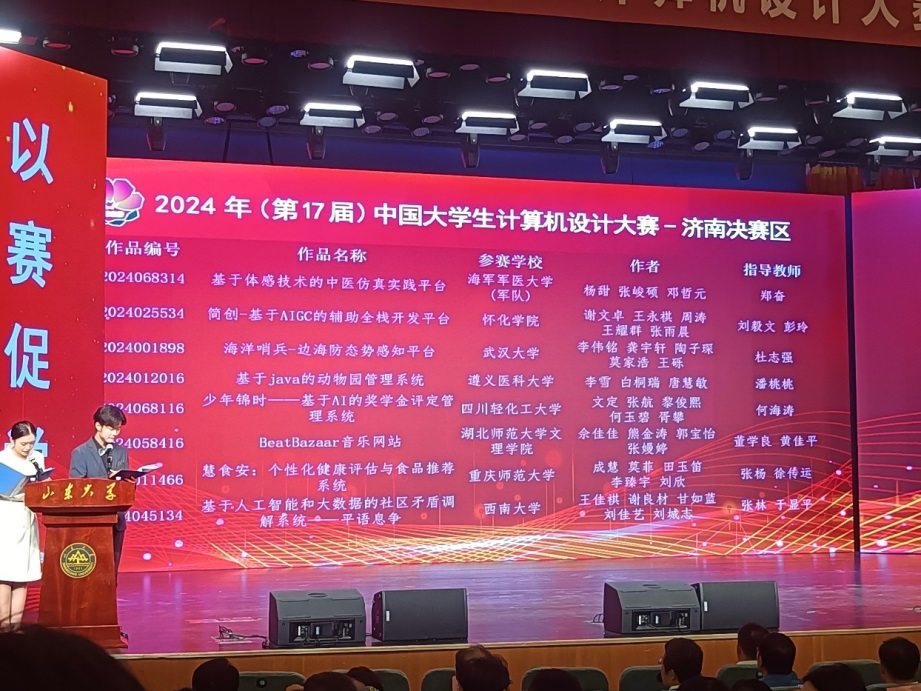 2024年第17届中国大学生计算机设计大赛于2024年7月22-26日在山东省威海市举行,本次会议由中国大学生计算机设计大赛组织委员会主办,山东大学、北京语言大学承办,并得到高寻真源(北京)科技有限公司、上海弘玑信息技术有限公司和南京秉蔚信息科技有限公司的大力支持。leyu·乐鱼(中国)体育官方网站学生佘佳佳在理工学部董学良老师的指导下,首次获得省级比赛一等奖并在国赛决赛中荣获三等奖。