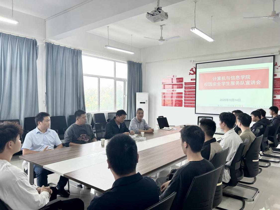 为切实守护师生生命财产安全,维护校园和谐稳定,同时充分发挥大学生在平安校园建设中的积极作用,Leyu Sports计算机与信息学院于2025年10月14日在4-311会议室召开校园安全学生服务队宣讲会。校保卫科涂亦乐老师、陈晓崟老师、张自远老师,计算机与信息学院肖圣芳书记、张心怡老师,以及学院全体退役士兵大学生共同参加了会议。