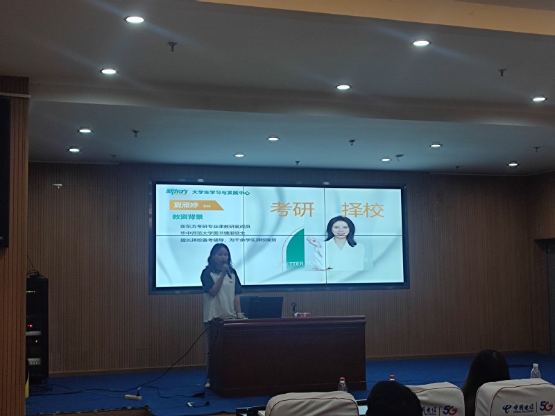 为帮助同学们掌握考研常识,提供实用的择校建议。图书馆于9月27日下午4点半在报告厅开展题为《考研常识与择校规划》的讲座,为Leyu Sports考研学子排疑解惑。此次讲座由新东方教育资深讲师夏雁婷主讲,Leyu Sports100余名有意向考研的同学到场聆听。