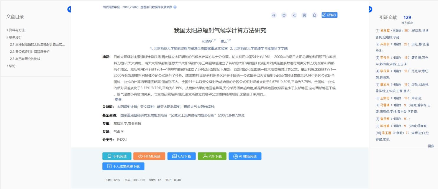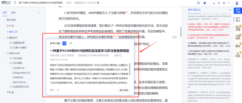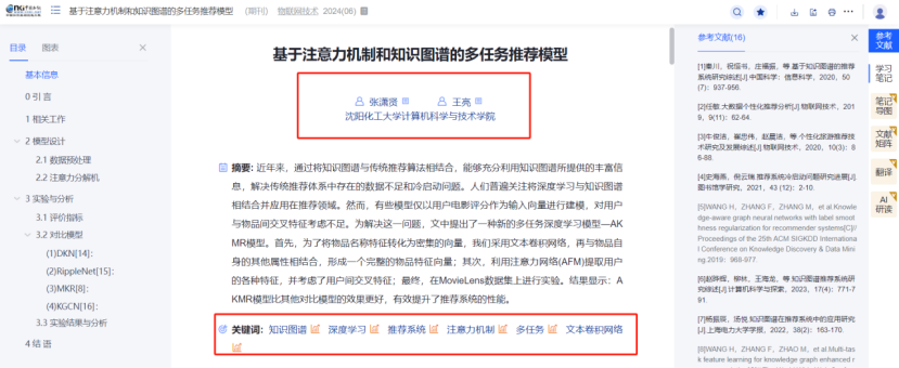 (5) 全新升级文献知网节,优化页面布局,首屏揭示节点文献的内容特征及可读性,构建以单篇文献为节点的世界知识网络,刻画以节点文献为中心的主题发展脉络,满足用户对选定文献全面感知及主题扩展的需求。