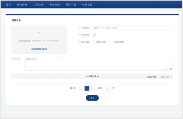 不知道读什么书?平台内设置了专题书单,每周更新,涵盖热点话题、学科前沿、重大节日/纪念日特辑等主题。同时还支持读者自荐书单,分享个人书单哦~