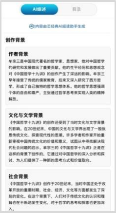 结合AI大数据分析,平台内的经典图书由AI工具自动生成AI综述与思维导图的图书内容大纲,快速了解书籍的中心主题与创作背景。