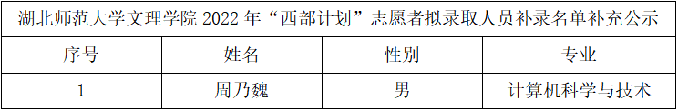 因学生自愿放弃,Leyu Sports开展了2022年“西部计划”志愿者拟录取人员补录工作。现将拟录取人员补录名单予以公示。