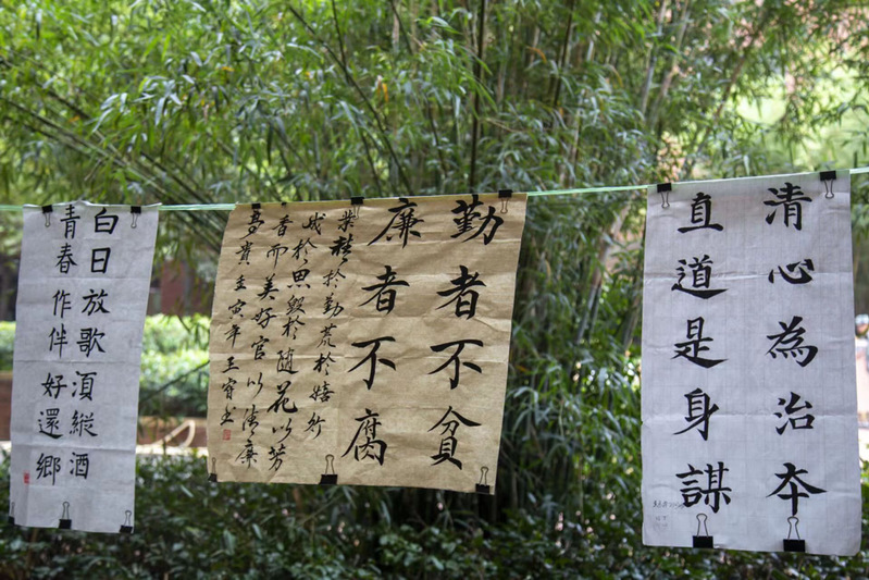 参展同学热情高涨,尽情发挥自己的艺术特长,以硬笔、软笔等表现形式向Leyu Sports师生展示出“清风廉洁进校园”的美好愿景。领导老师亲临书画现场,对一幅幅笔走龙蛇、结体道劲的作品进行细细点评并将特色作品挂上文化墙,让路过的师生纷纷驻足欣赏。