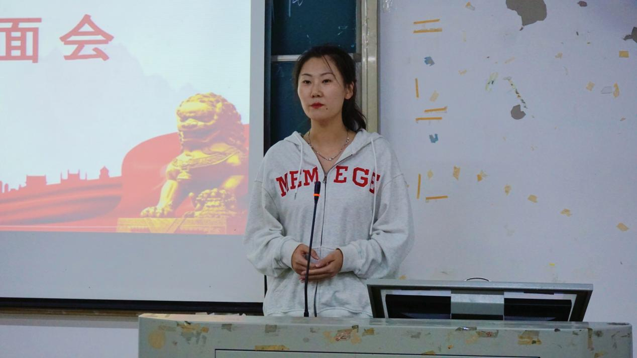 团委指导老师汤可上台发言,她首先对新干事表达了热烈的欢迎,并以自己学生时代干部的亲身经历来期盼新一届干事们能够不忘初心,保持谦逊,礼貌待人,认真对待工作。